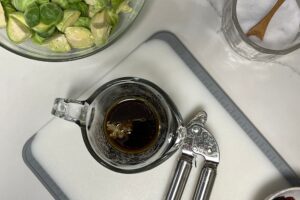 Pour the sauce over the Brussel sprouts and coat them well. Transfer them to the lined baking sheet and roast for 20-25 minutes.